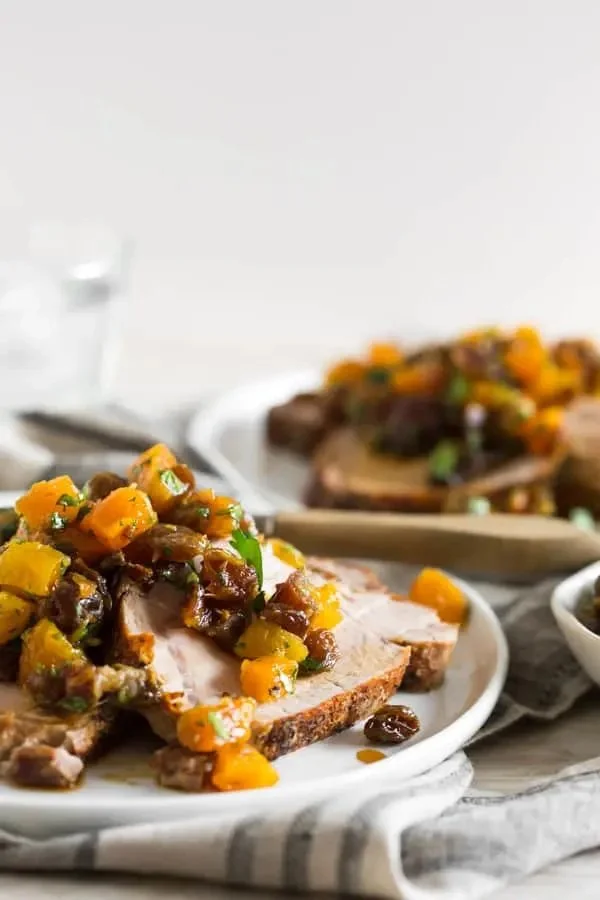 Grilled Pork Tenderloin with Fall Fruit Compote Family Meal. Pre-order and pay online today. We will have your complete family meal packed up in disposable containers, ready to be enjoyed at home.