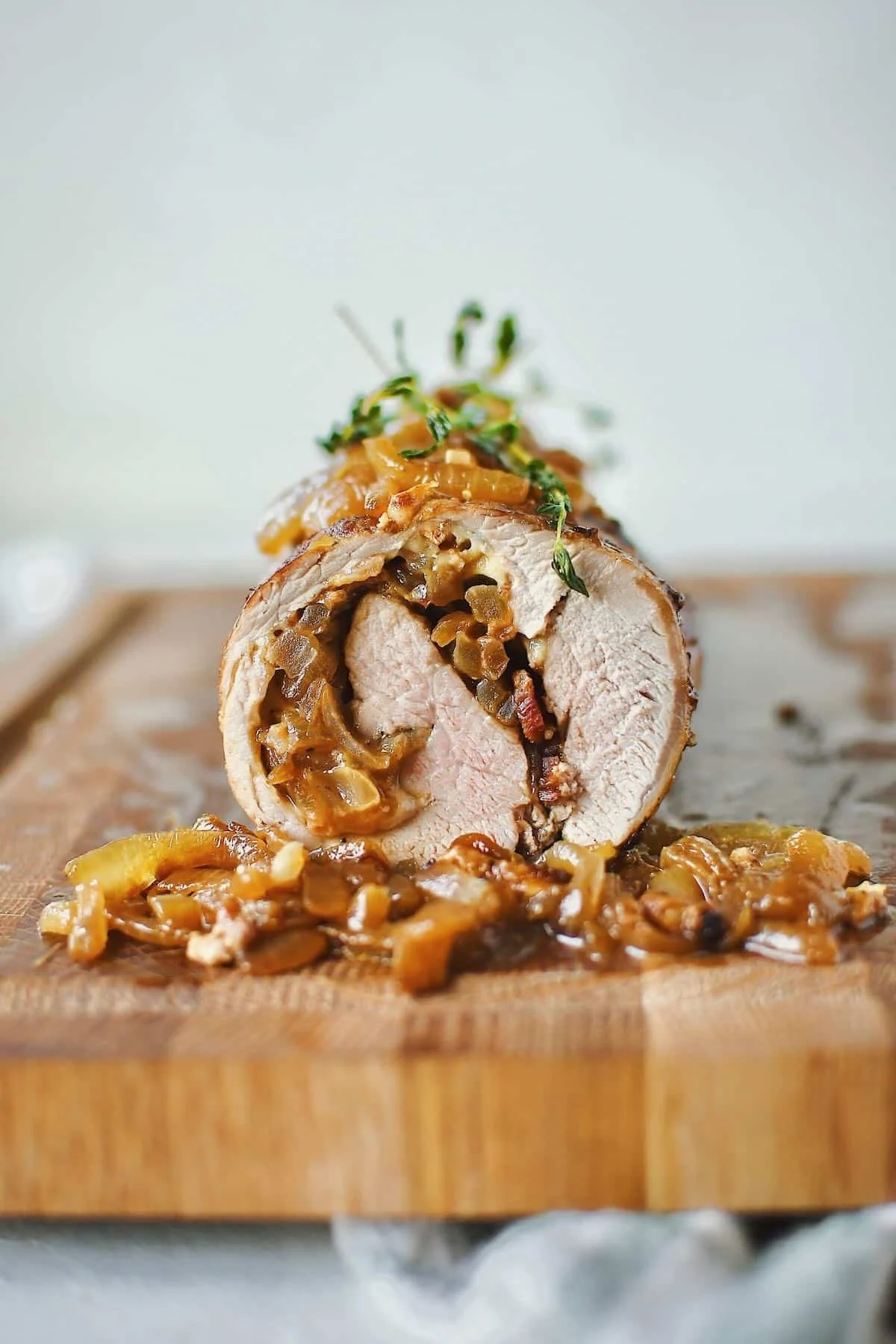 MARINATED AND GRILLED PORK TENDERLOIN DINNER MENU: stuffed with apple-raisin chutney; loaded baked sweet potato with butter and crispy bacon, with sour cream on the side; crispy Brussels sprouts; peach crisp for dessert!